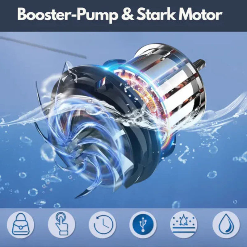 Αυτή η φορητή ντουζιέρα είναι εξοπλισμένη με επαναφορτιζόμενη μπαταρία και μπορεί να λειτουργήσει χωρίς ηλεκτρικό ρεύμα μόλις φορτιστεί.