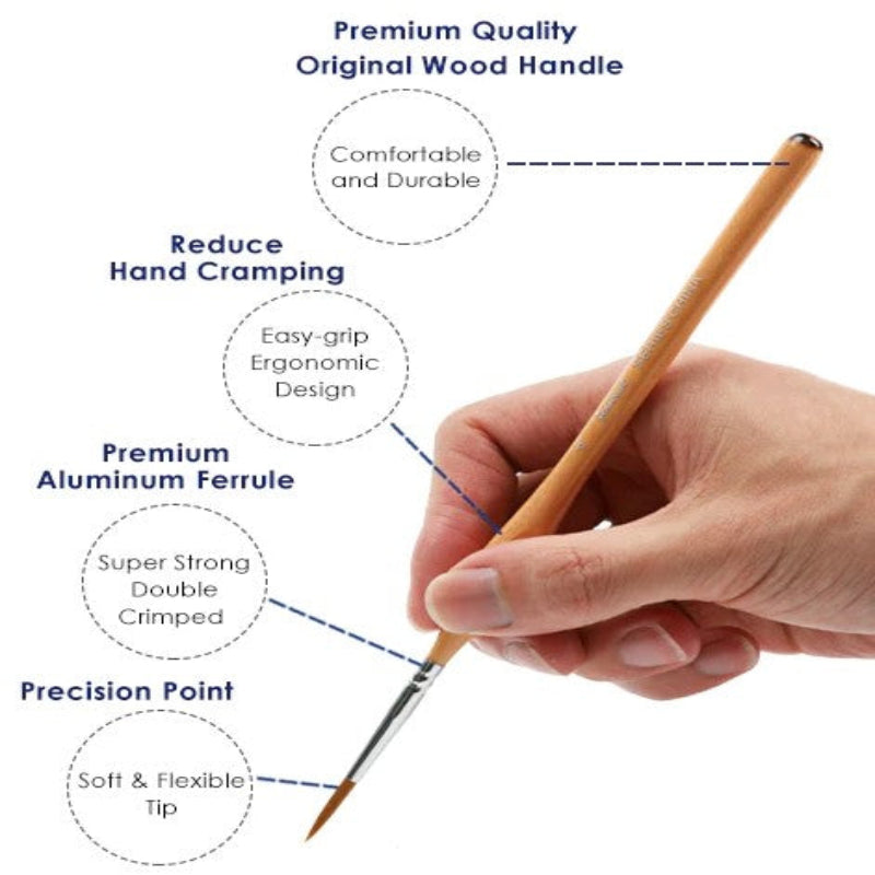 11 מברשות בגדלים 5/0 עד 7 לחקור את כל הטכניקות, מקווים דקים ועד למילויים.