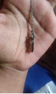 Nei, det anbefales å ta av halskjedet før du dusjer eller svømmer.